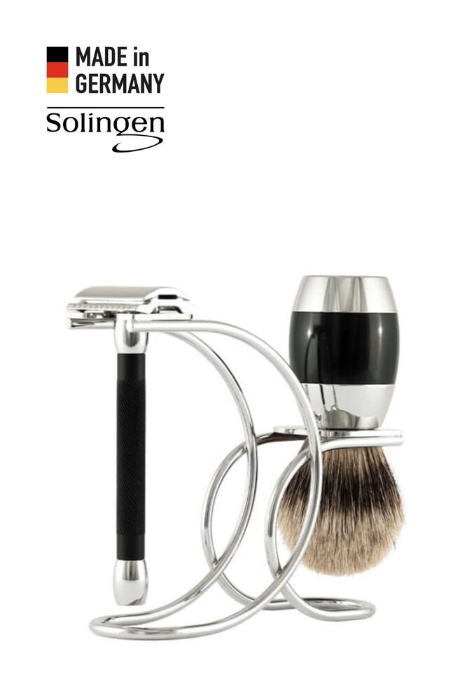 Solingen Merkür Siyah & Krom Geleneksel Tıraş Seti